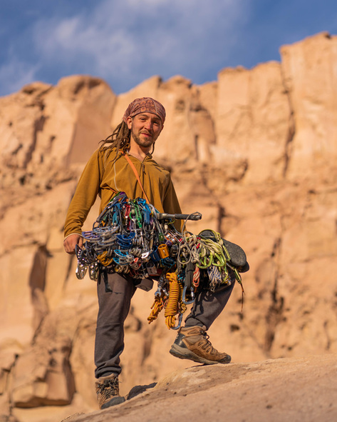 Luego de terminar nuestro trabajo en la comunidad local de Alto el Loa, nos dirigimos a abrir un multilargo de escalada tradicional, decidiendo registrar todo en cámara. En una travesía agotadora, lo dimos todo por la tarea y terminamos a la medianoche rapelando solo con la luz de la luna que nos acompañó todo el camino de vuelta.